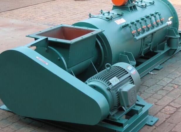 在料斗下部,進料缸與混合缸同軸互通。主軸位于混合缸和進料缸內(nèi)。主電機帶動主軸轉(zhuǎn)動。單軸粉塵加濕器安裝在進料缸的主軸上,并圍繞主軸。所述螺桿推桿固定,攪拌桿均勻固定在攪拌鼓內(nèi)的主軸上,攪拌鼓上均勻設(shè)置有一排進水口,進水口與進水管連接。攪拌筒上端還固定有振動電機,避免了它加濕混合不均勻,不易被煤灰附著,運行安全可靠的特點。