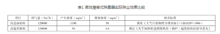 根據(jù)電廠除塵改造前后的環(huán)境影響評價報告,實際顆粒物排放數(shù)據(jù)見表1。根據(jù)表1的驗收結(jié)果,生物質(zhì)鍋爐的顆粒物排放濃度為添加高效屋頂除霧器后達到4.8mg/m3,符合“關(guān)于加快燃煤機組(鍋爐)超低排放的指導意見”。標準除塵要求小于5mg/m3是好的。